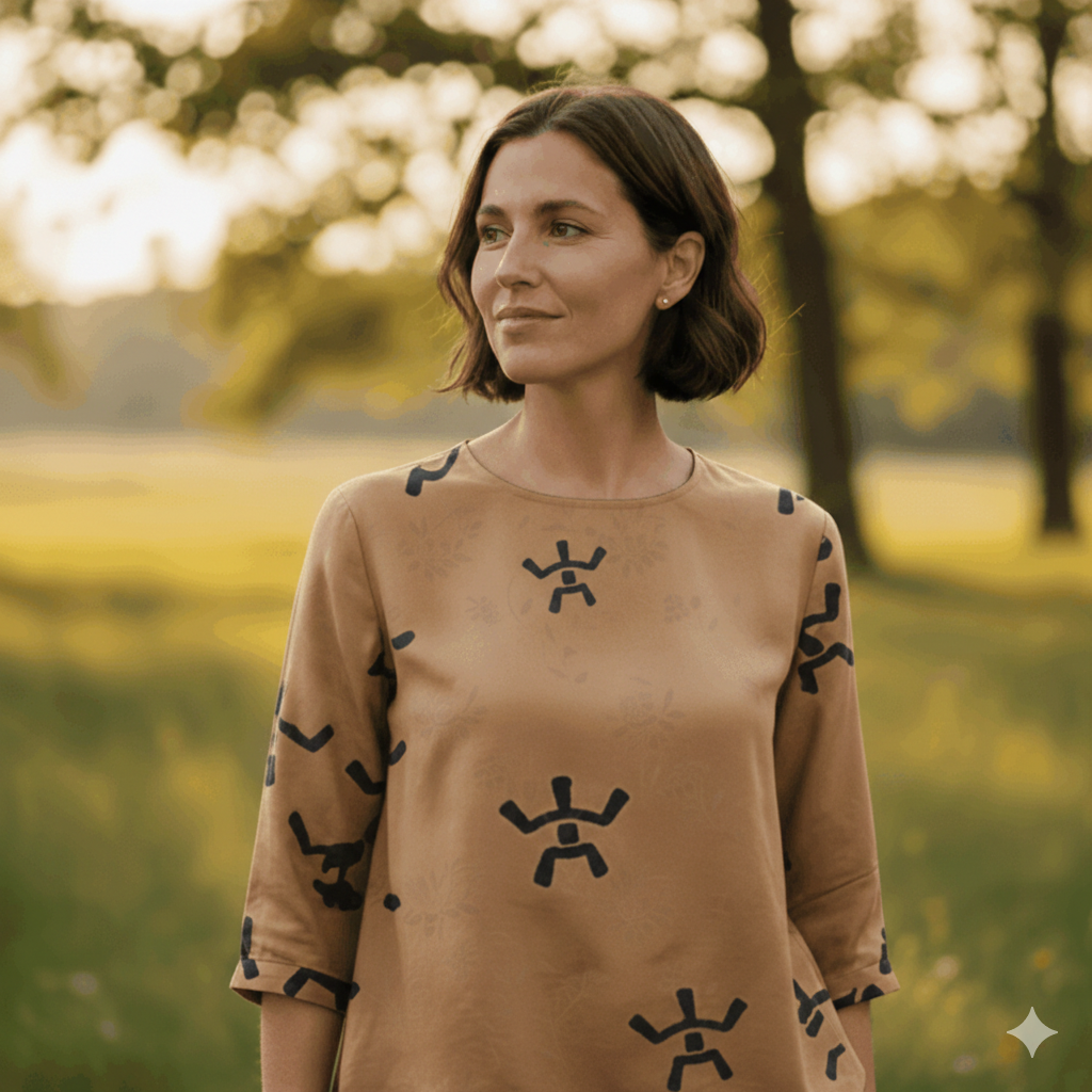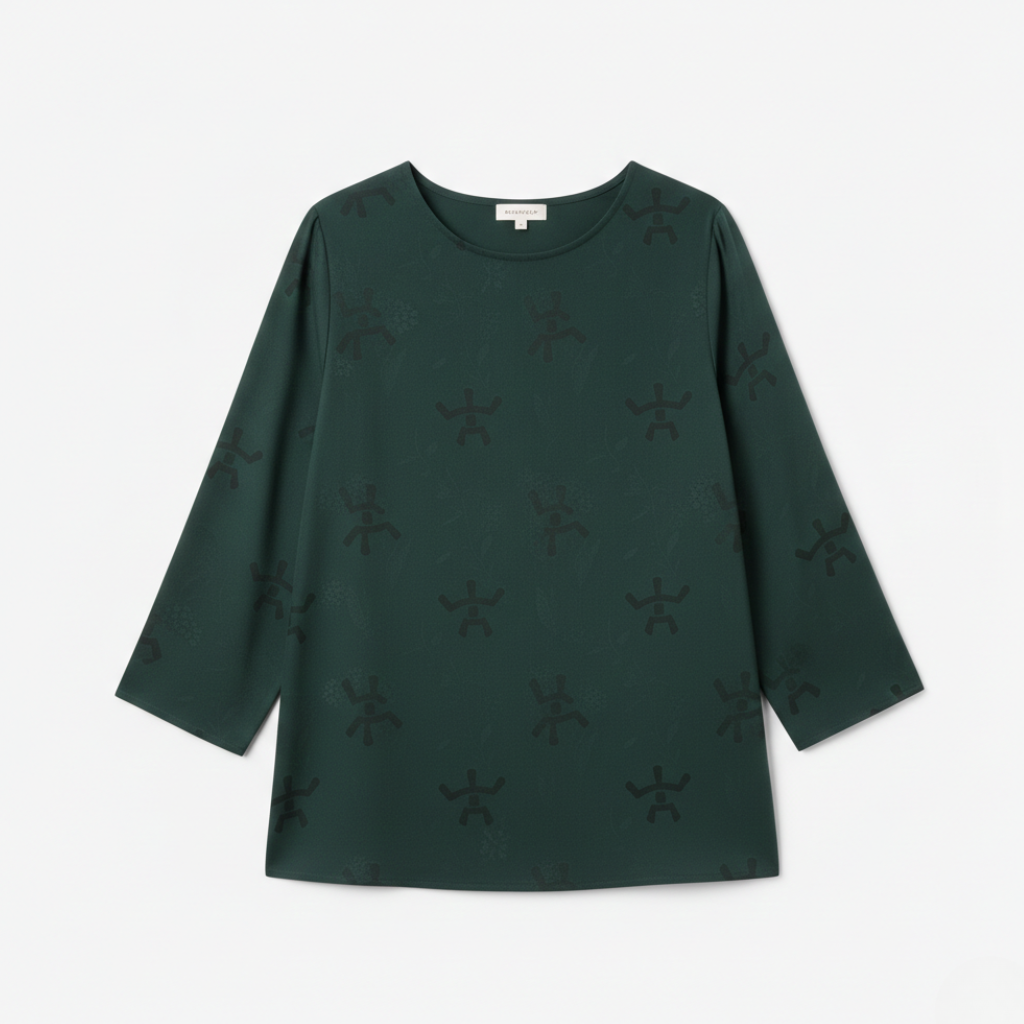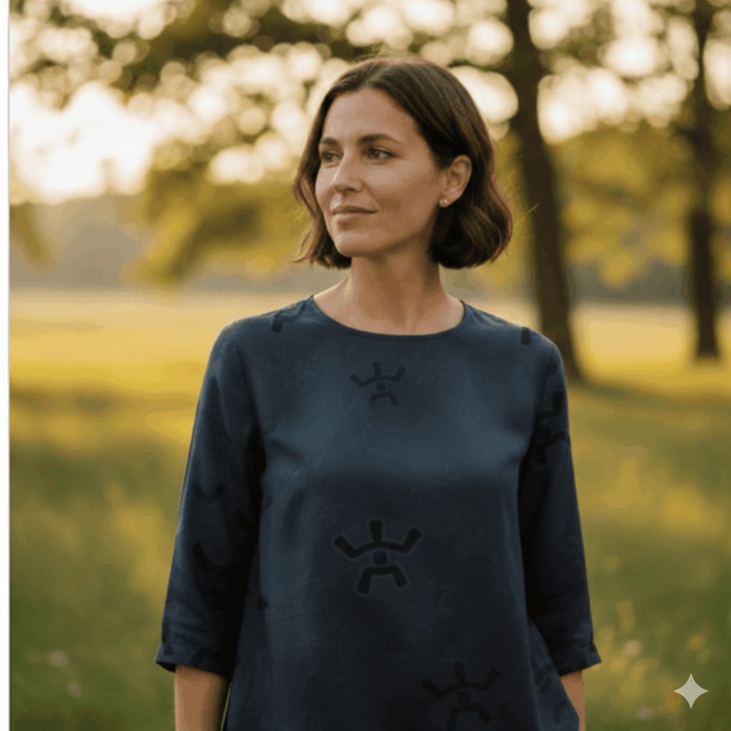 Découvrez la Blouse Ramure, une blouse femme coton léger en lyocell et coton biologique qui allie fluidité naturelle et sophistication discrète. Son motif géométrique ton sur ton apporte un relief subtil à cette pièce éthique, déclinée en Vert Sapin profond, Beige Sable lumineux et Bleu Nuit intense. Une élégance consciente pensée pour traverser les saisons.