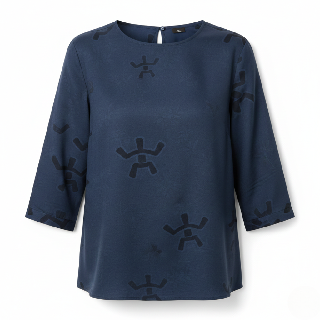 Les manches 3/4 structurent la silhouette tout en mettant subtilement en valeur les poignets. La coupe fluide flatte naturellement toutes les morphologies.