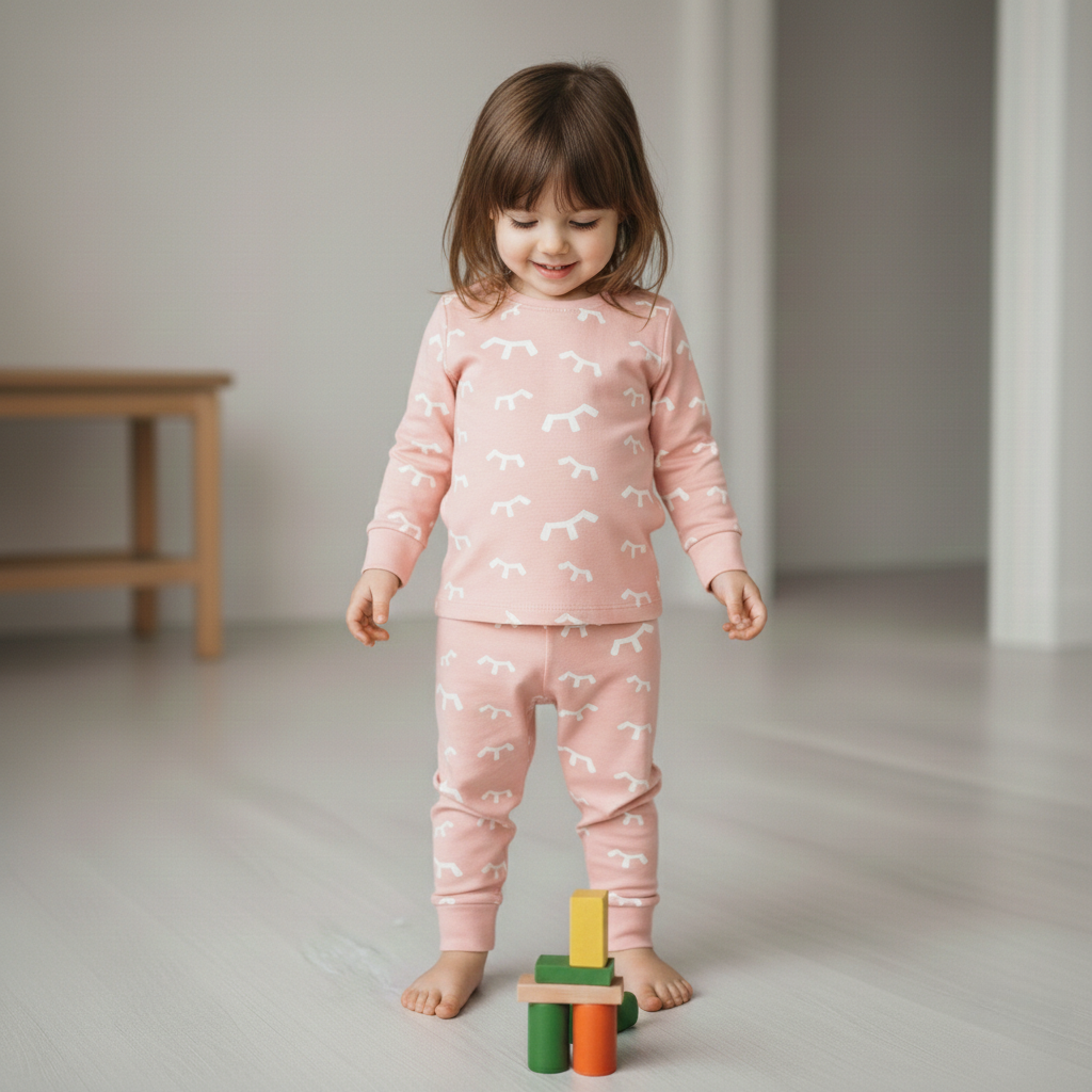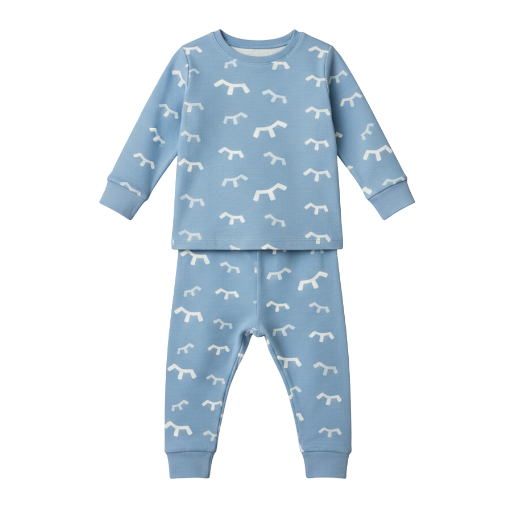 Ses motifs joyeux de cils fermés créent une atmosphère apaisante et ludique, parfaite pour le rituel du coucher. Ces petits détails graphiques transforment le moment du pyjama en instant de complicité : « Regarde, le pyjama aussi ferme les yeux pour dormir ! » Un moyen doux d’accompagner votre enfant vers le sommeil.