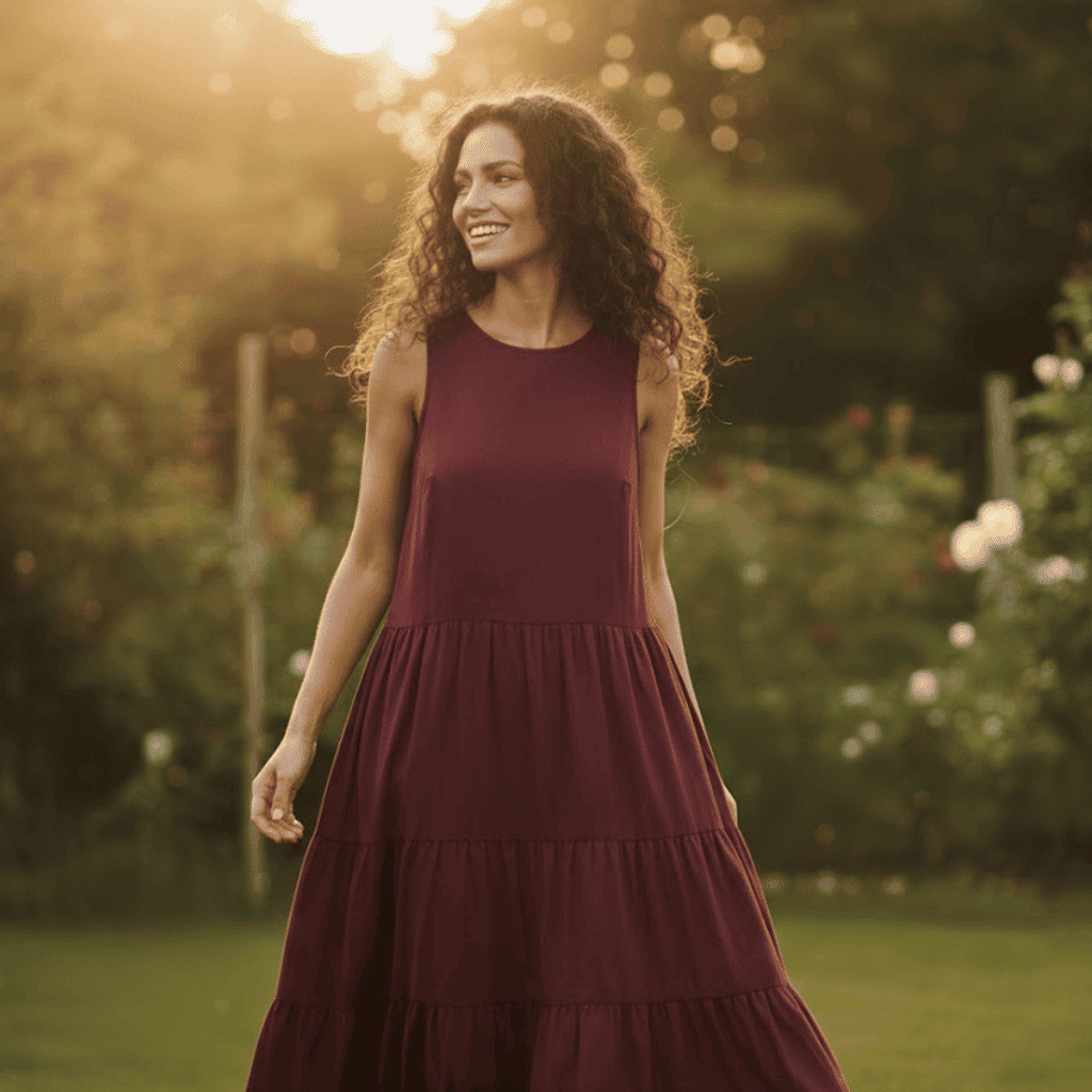 La Robe Gaïa longue et bohème en lyocel bio incarne l’élégance naturelle. Ses volants étagés et sa coupe fluide subliment votre féminité. Une pièce éthique et romantique pour un style conscient et intemporel.