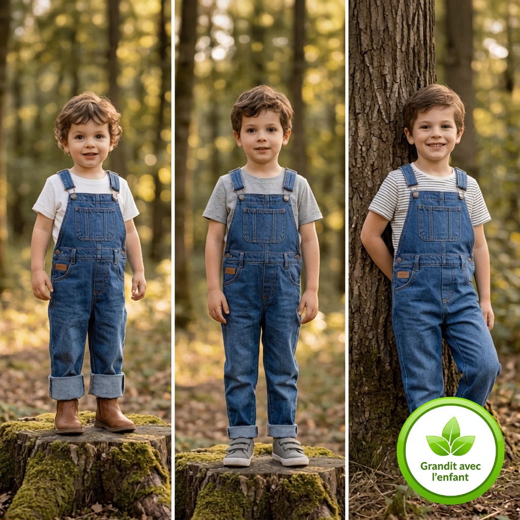 Son aspect évolutif est un véritable atout. Grâce aux bretelles ajustables et aux ourlets modulables, la salopette s’adapte à la croissance de l’enfant. Elle peut ainsi être portée plus longtemps, ce qui en fait un choix économique et durable.