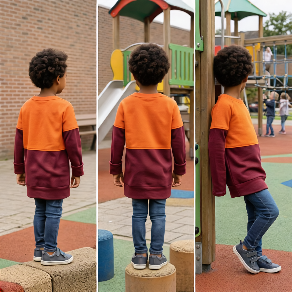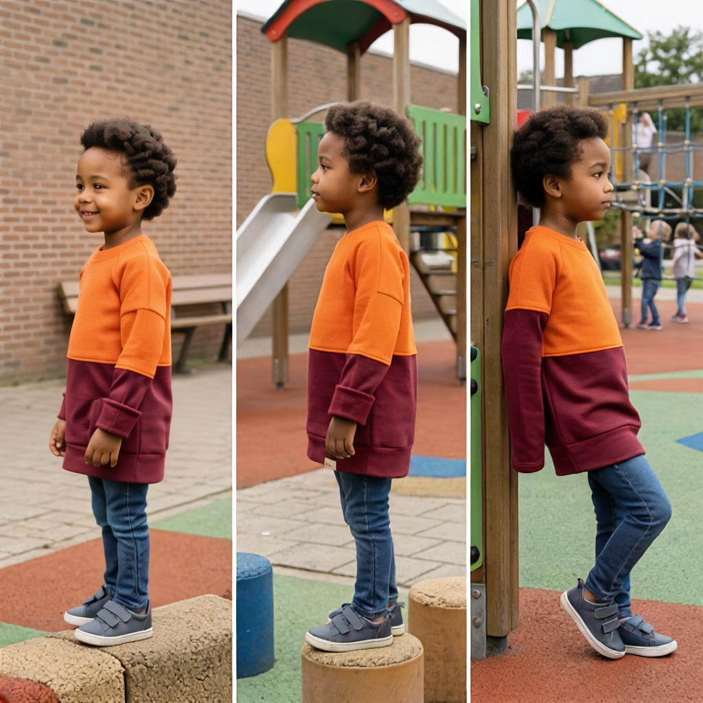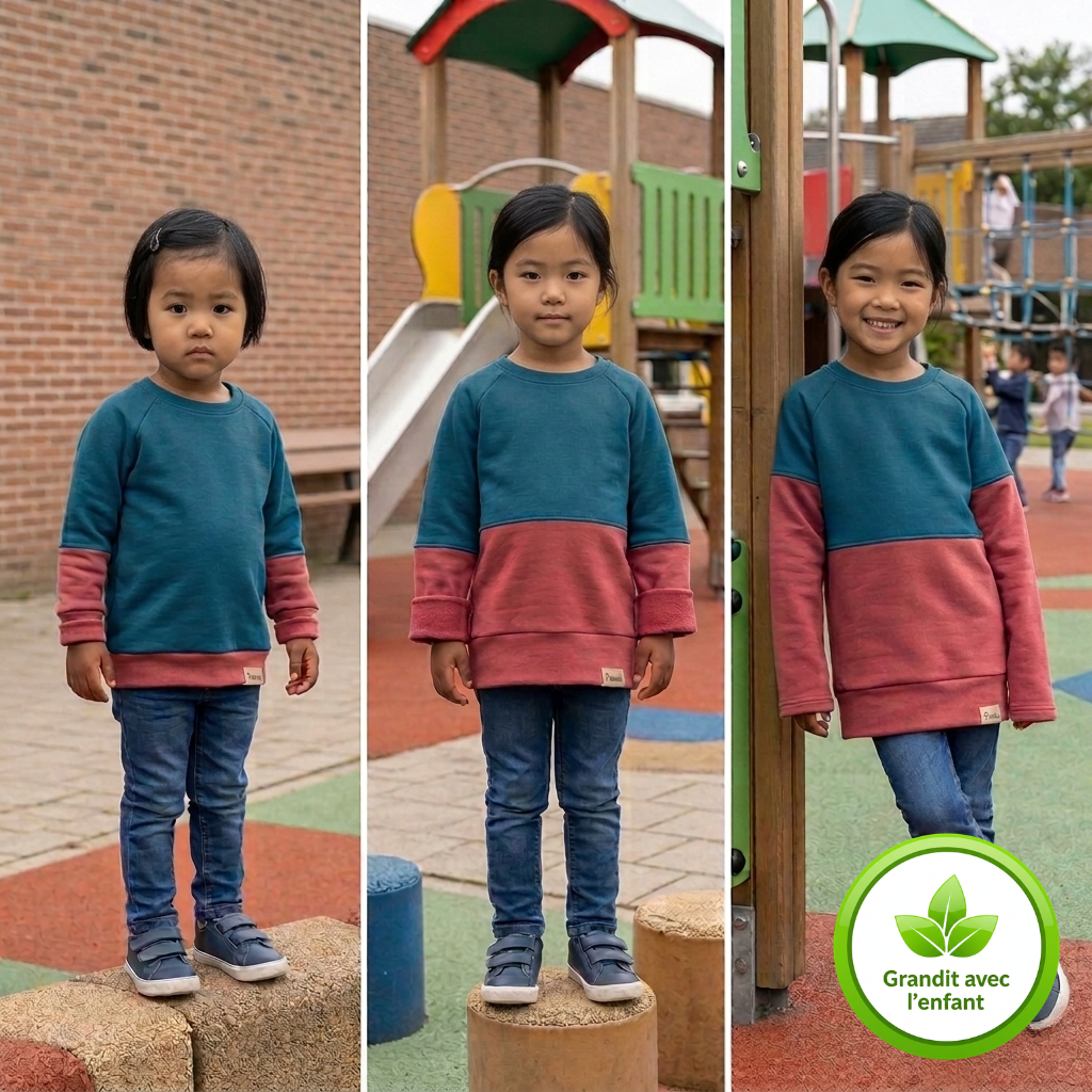 De plus, le système évolutif par retournement est révolutionnaire et pratique. Les manches et le bas du sweat peuvent être retournés selon la taille de votre enfant. Ainsi, le sweat grandit littéralement avec lui sur plusieurs années sans devenir trop court.